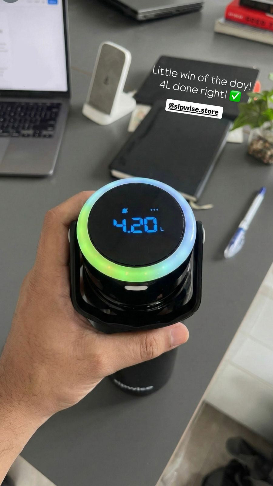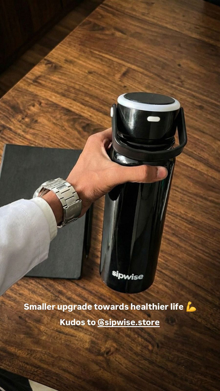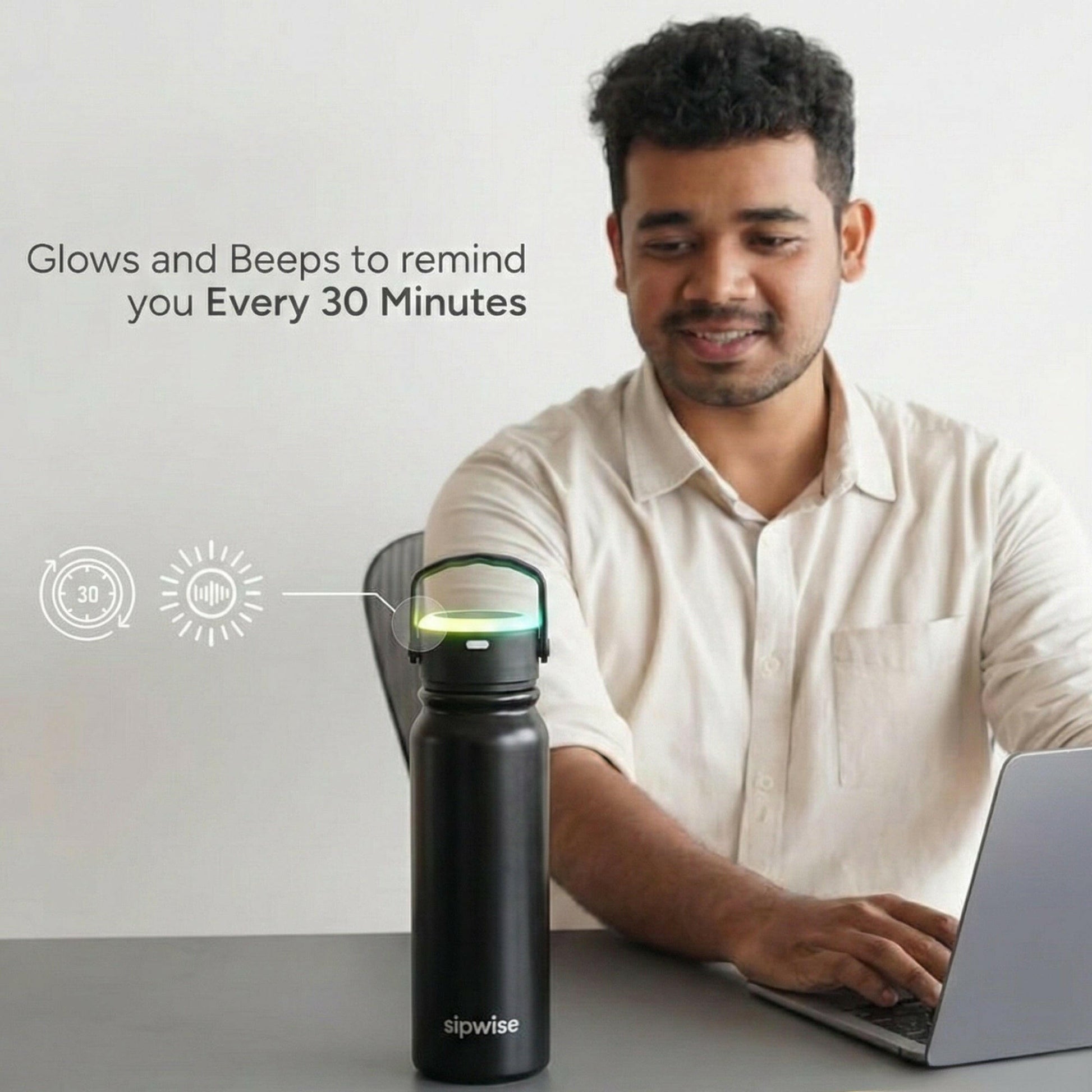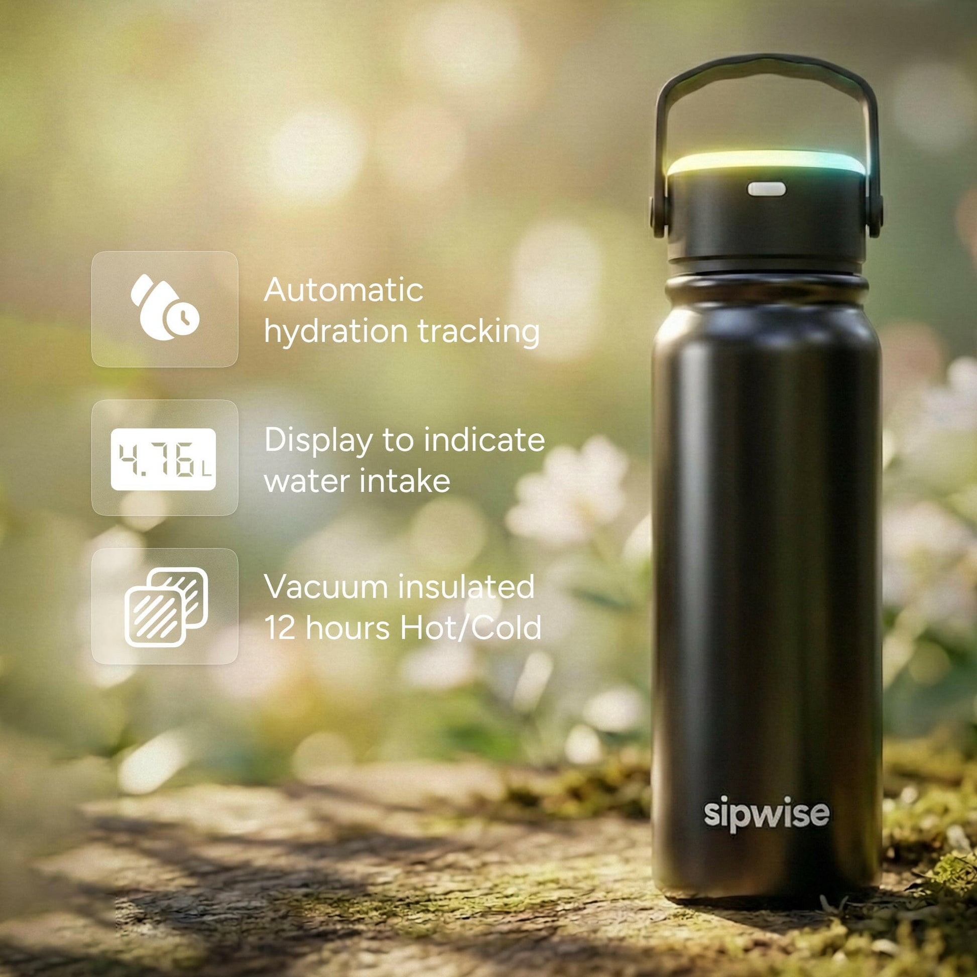 Sipwise is a smart water bottle that reminds you to drink water using gentle glow alerts (and sound alerts). It helps you stay hydrated without relying on memory.