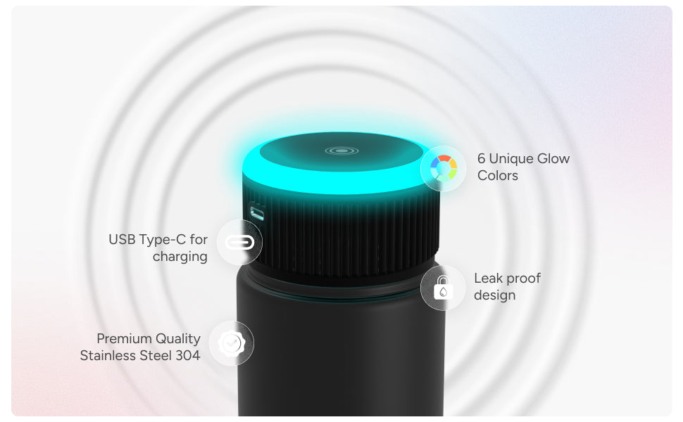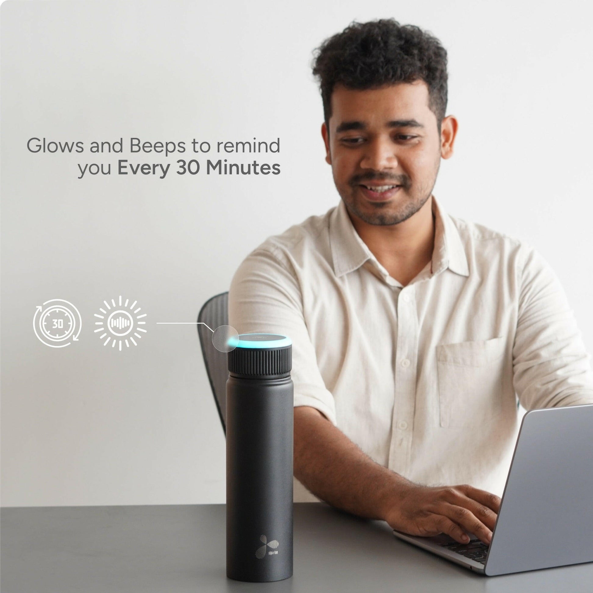 A subtle glow and beep sound remind you to take a sip every 30 min.
